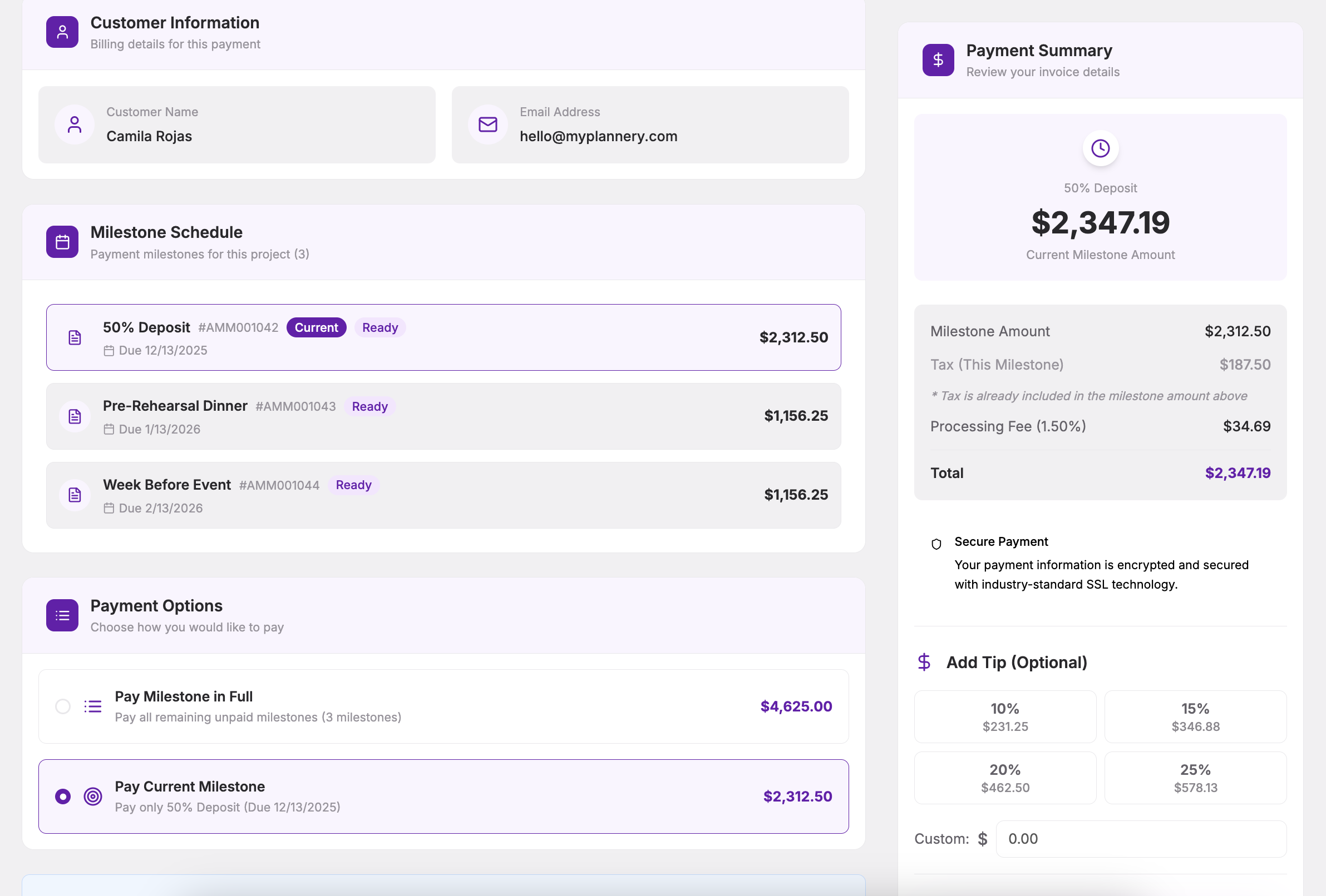 "Getting paid has never been easier Plannery’s milestone payments and save us hours every week."